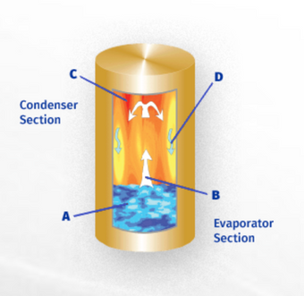 A traditional heat pipe is a hollow cylinder filled with a vaporizable liquid.